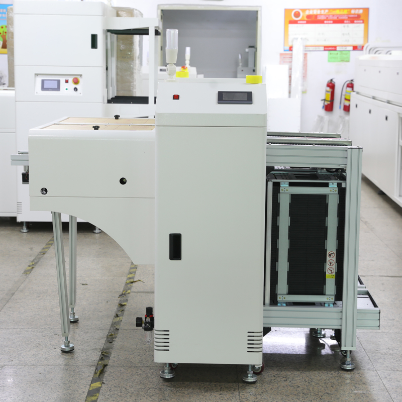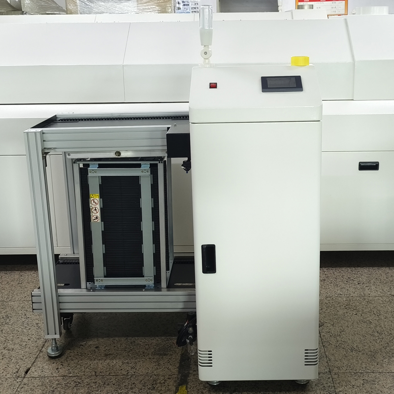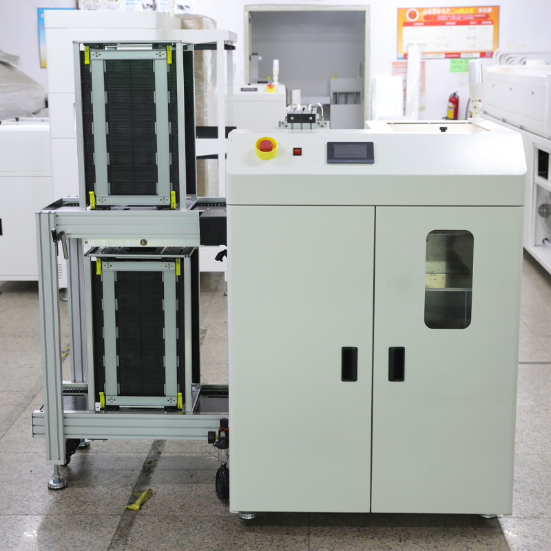 下板機又稱收板機或下料機,是SMT生產線的終點。它通過接收上位機的信號,將SMT貼片機上完成的PCB放入料框中,實現自動收板功能,一般位于SMT整線的末尾位置。